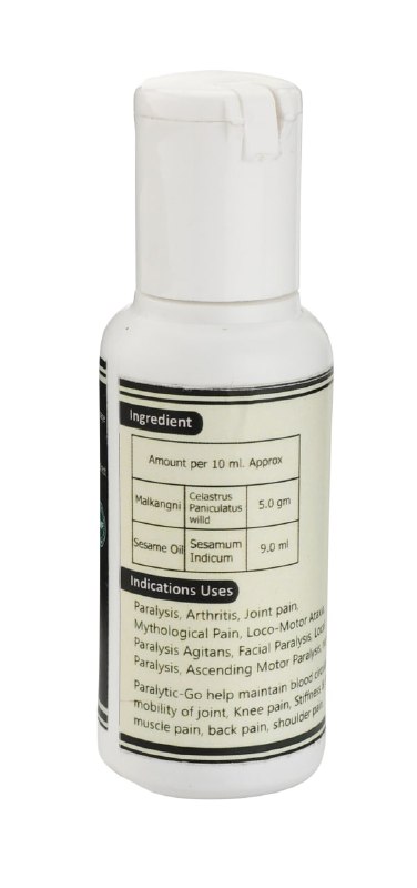 Paralytic-Go oil helps recover paralysis, paralysis agitans, facial paralysis, Arthritis, Loco motor ataxia, Maintain blood circulation, Mobility of joints, Stiffness, Numbness & Swelling.